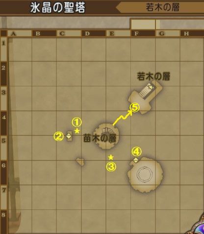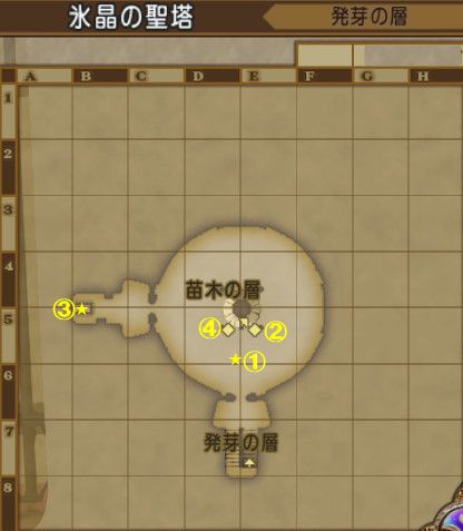 ※苗木の層では見えない道を出現させて移動していきます。道順を下のマップ画像に書いたので参考にしてください。